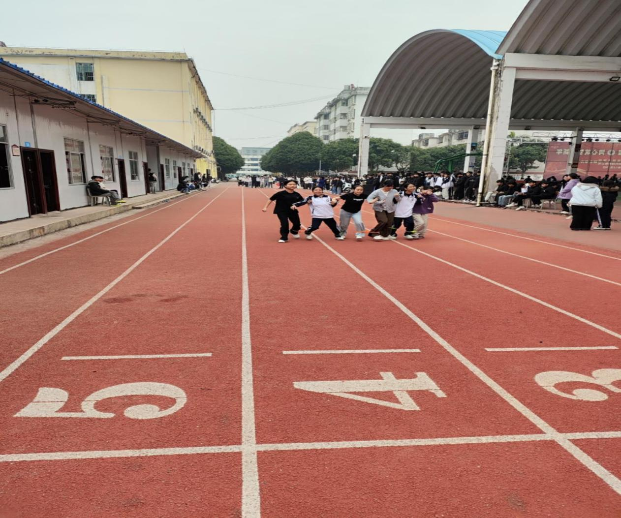 赛场上,各参赛队伍精神抖擞、默契协作。拔河比赛中,队员们紧握长绳、脚蹬实地,呐喊声与加油声震彻校园。