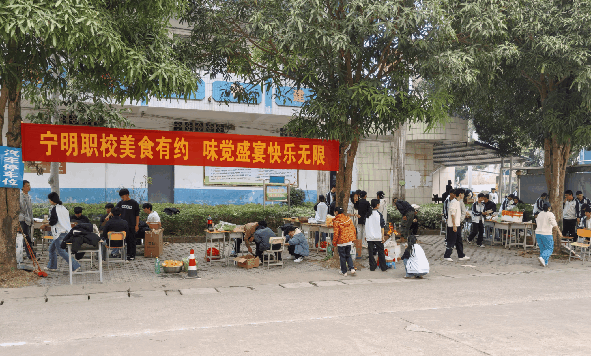 2026年1月16日,冬日暖阳洒满宁明县职业技术学校校园。上午9点,综合楼前临时停车场地热闹启幕,以“宁明职校美食有约 味觉盛宴快乐无限”为主题的学生美食烧烤活动正式拉开帷幕,数百名同学齐聚一堂,在烟火气中共享欢乐时光。